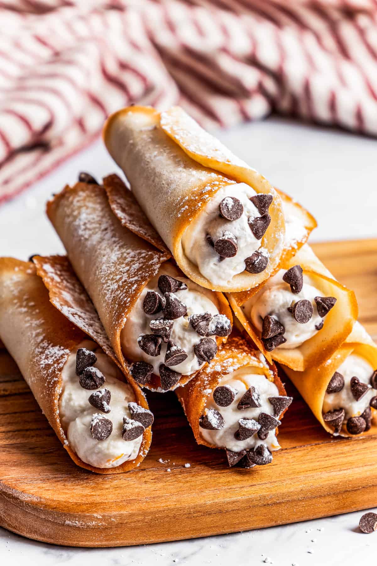 Fan favoite! Lightly fried eggplant strips filled with creamy ricotta mixture, rolled, and baked with our marinara.